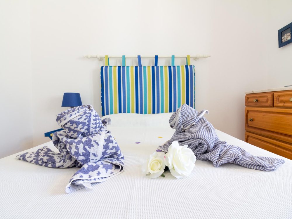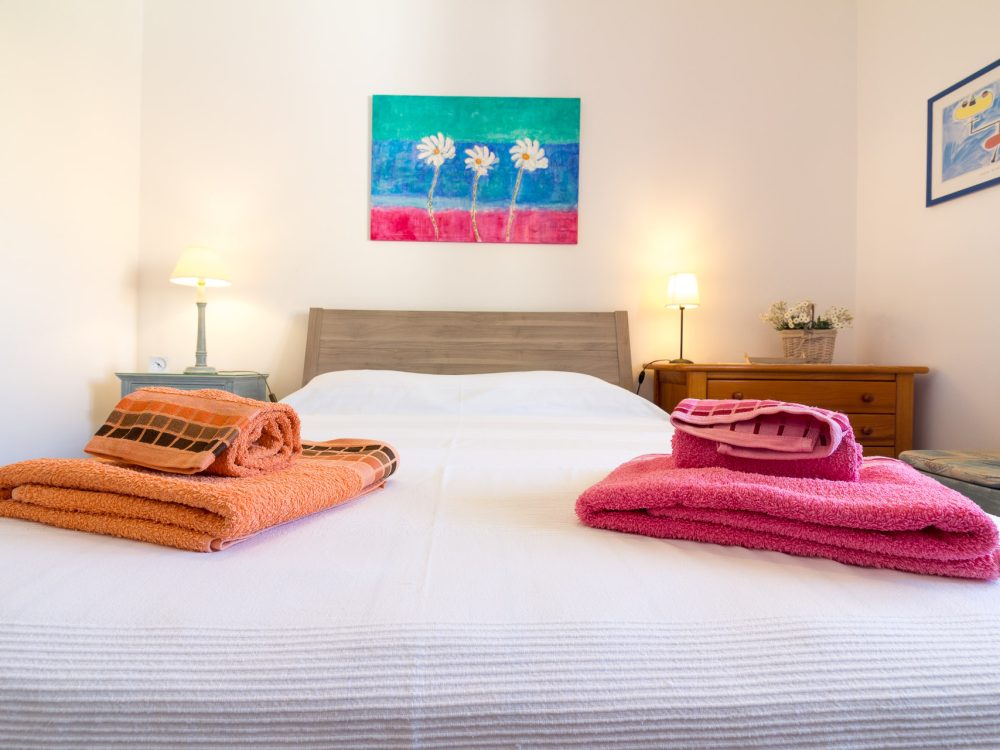 One of the bedrooms is equipped with a double bed and the other one with twin beds. The kitchen is fully equipped for 4 people, the living/dinning room area has a television and (…)